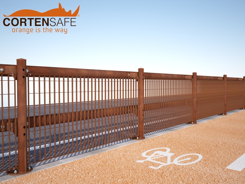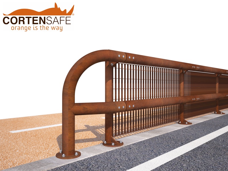 Unsere technische Abteilung begann daher mit dem Studium einer Brückenrandbarriere, die als Leitplanke für Fahrzeuge fungieren, aber auch für Radfahrer und Fußgänger funktionell sein sollte. Eine Lösung aus Cortenstahlrohren, wie die anderen Cortensafe-Produkte, frei von stumpfen Teilen und ästhetisch ansprechend. Und so entstand Cervino.