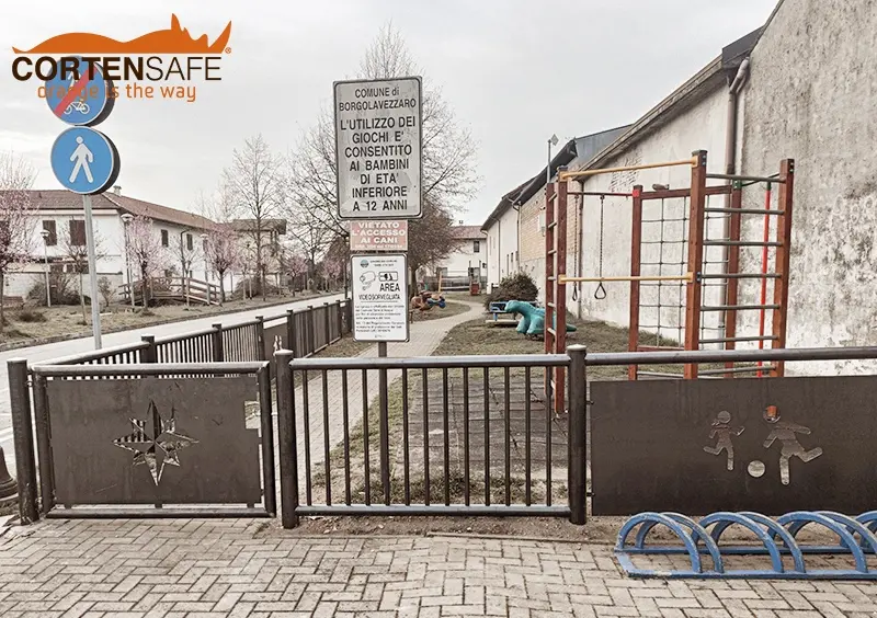 „Der Cortenstahlzaun“, erzählt uns Architekt Leonardo Bartoli, Leiter des technischen Bereichs der Stadtverwaltung, „wurde entlang einer Rampe installiert, die von einem der Hauptparkplätze zu den mittelalterlichen Mauern des historischen Zentrums führt.“