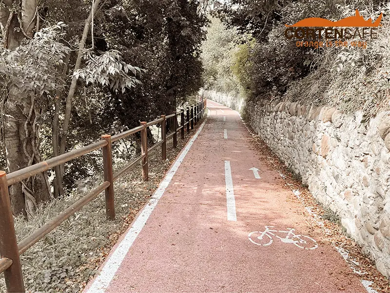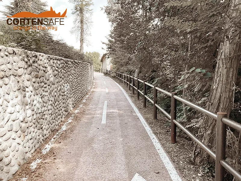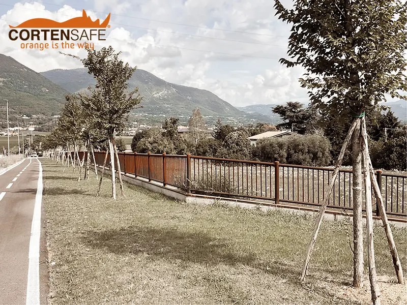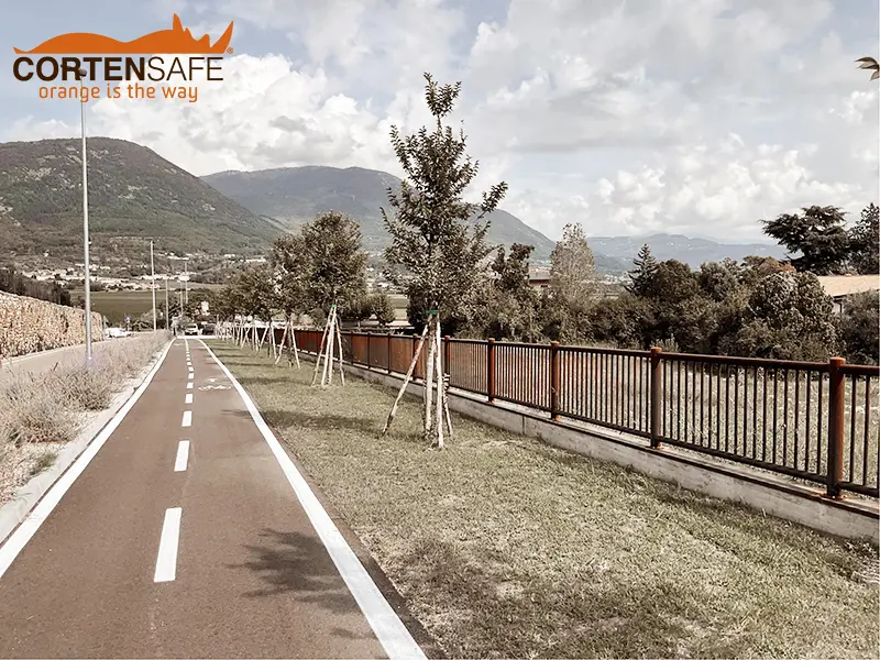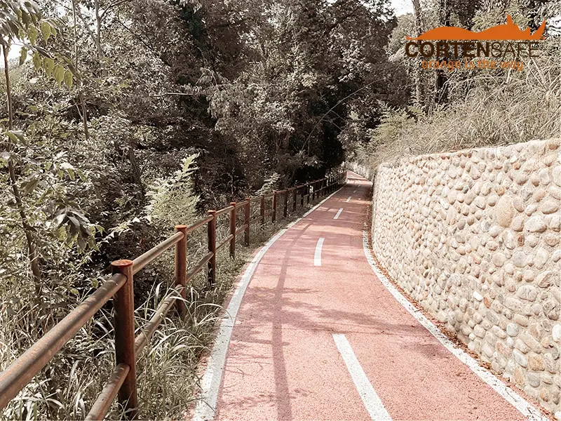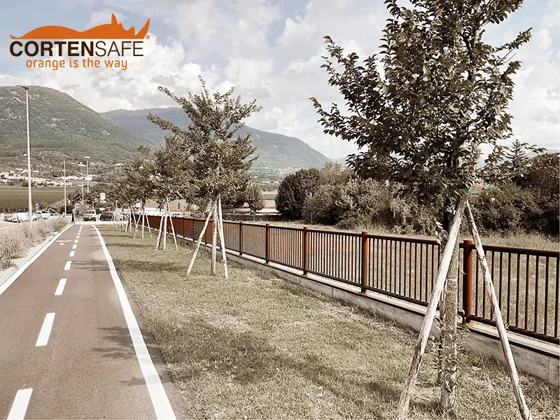 Im Vergleich zu Holz bietet Cortenstahl im Laufe der Zeit eine hohe Widerstandsfähigkeit, benötigt keine Wartung und fügt sich außerdem sehr gut in die Umgebung ein, so dass die Homogenität der gesamten Maßnahme gewährleistet ist.