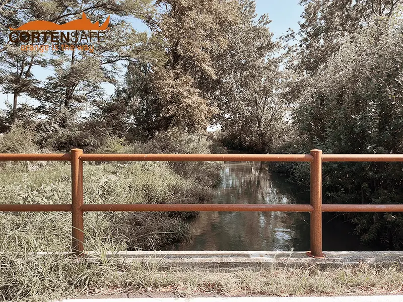 Wie die Vermessungstechniker der Provinz Lodi, Mirko Arras, Verfahrensleiter, und Domenico Zanaboni, Bauleiter, betonen, wurde Cortenstahl aufgrund seiner Dauerhaftigkeit und seiner Widerstandsfähigkeit gegenüber ungünstigen Witterungsbedingungen, vor allem Feuchtigkeit, bevorzugt.