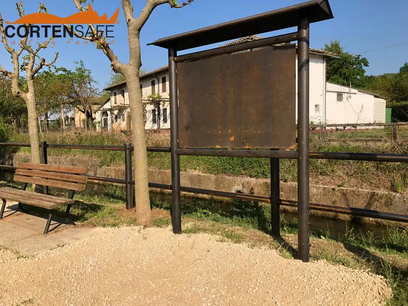 Per questa opera sono state scelte delle staccionate modello Brunico H2C in acciaio Corten con lo scopo di rendere più sicuro un percorso pedonale a Volpago del Montello, in provincia di Treviso. E’ inoltre stata installata una bacheca Levico.